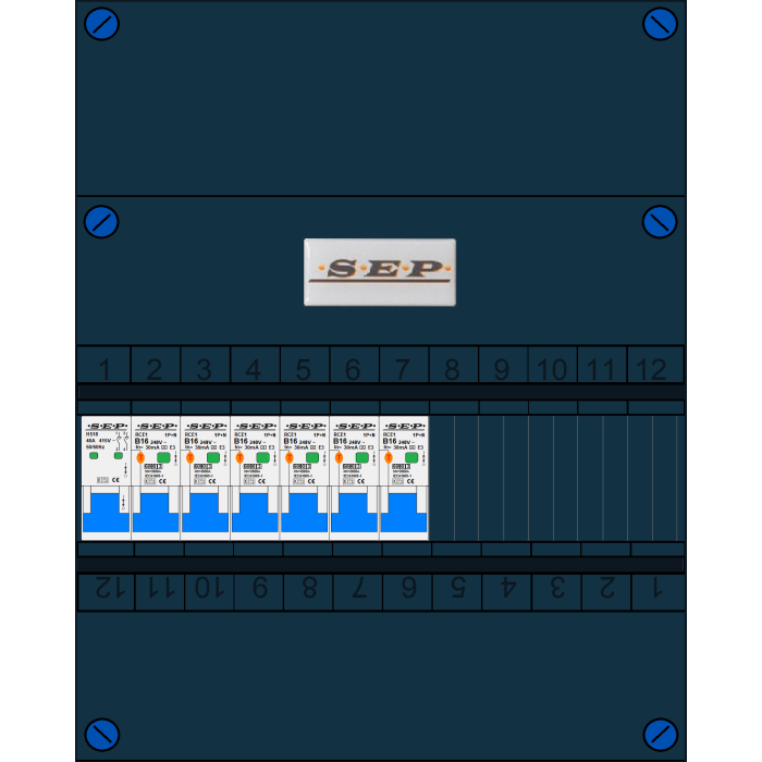 SEP groepenkast, hoofdschakelaar, 6x aardlekautomaat (1 fase)