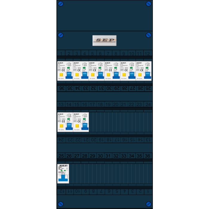De SEP groepenkast is een typische woningbouw verdeler welke zeer geschikt is voor renovatie en nieuwbouw toepassingen. Doordat de breedte van 220mm gelijk is aan de oude groepenkast is het uitwisselen zeer eenvoudig en hoeft er weinig te worden aangepast. Buiten de standaard leverbare groepenkasten is het mogelijk om een klant-specifieke oplossing aan te vragen. Deze kasten zijn eenvoudig uit te breiden. Alle groepenkasten worden in eigen beheer geassembleerd en getest. Alle componenten worden onder spanning getest, de gebruikte aansluitmaterialen zijn specifiek ontworpen voor deze toepassing. Iedere schroef wordt met de hand aangedraaid op de juiste aandraaimoment.
